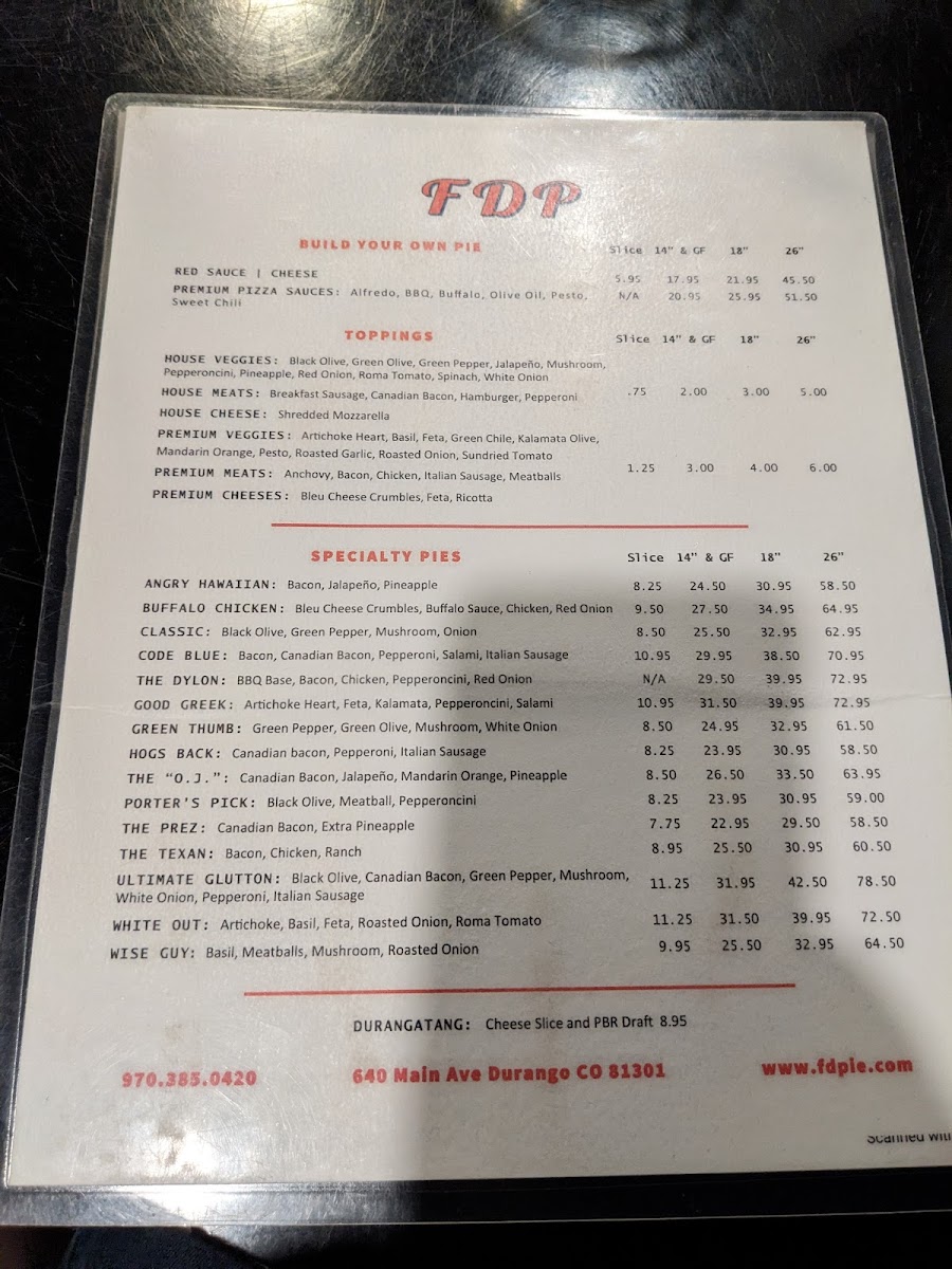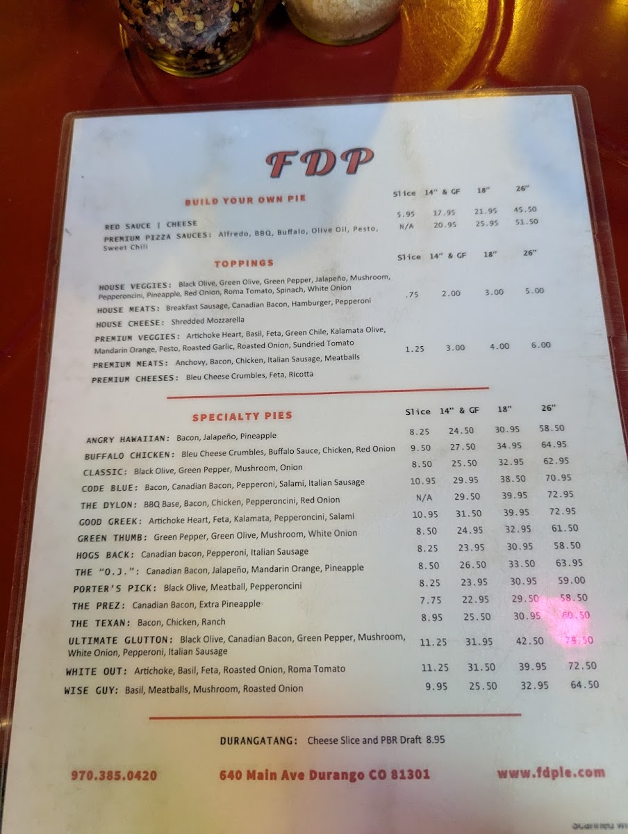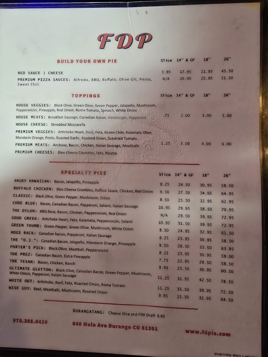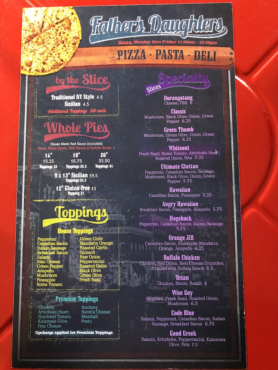 Welcome to Father's Daughters Pizza, a delightful gem located at 640 Main Ave in Durango, CO. This charming pizzeria offers an impressive array of menu options designed to cater to all pizza lovers.